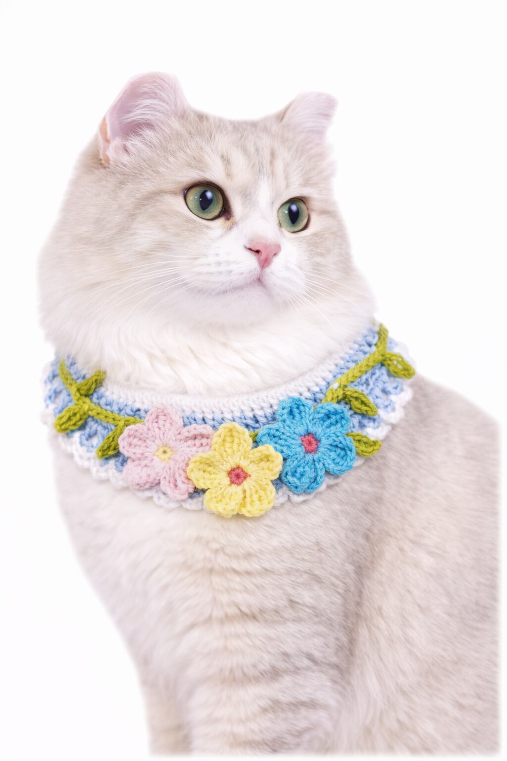 パステルフラワーカラー ~ブルー~〈猫.ねこ.首輪.アクセサリー.帽子.被り物.編み〉