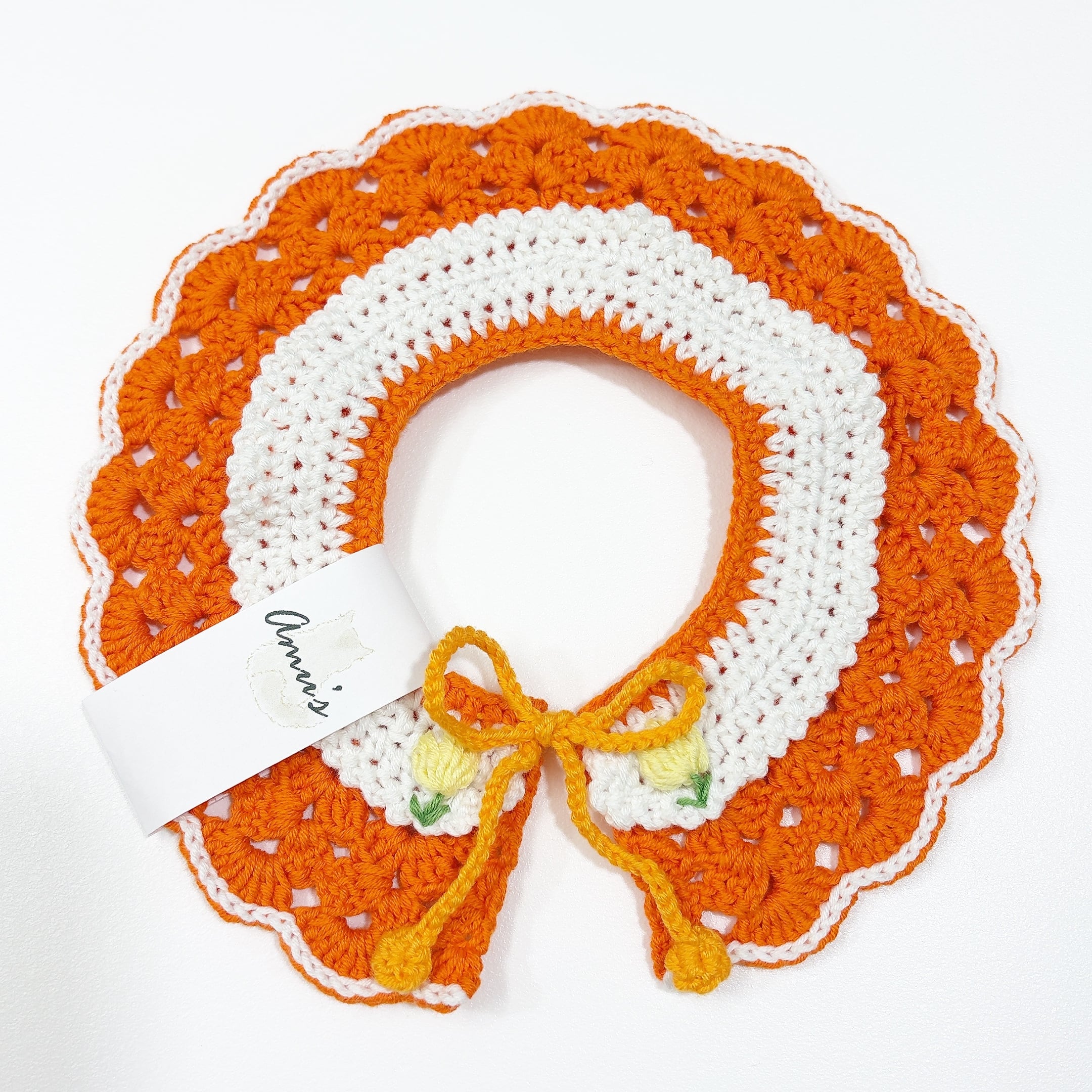 カラフルポンチョ~オレンジ~〈猫.ねこ.首輪.アクセサリー.帽子.被り物.編み〉