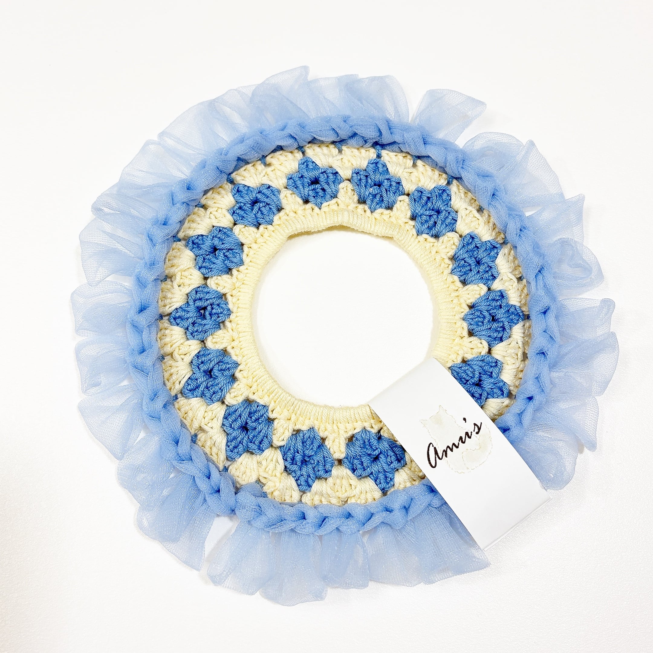 レースフリルカラー~ブルー~〈猫.ねこ.首輪.アクセサリー.帽子.被り物.編み〉
